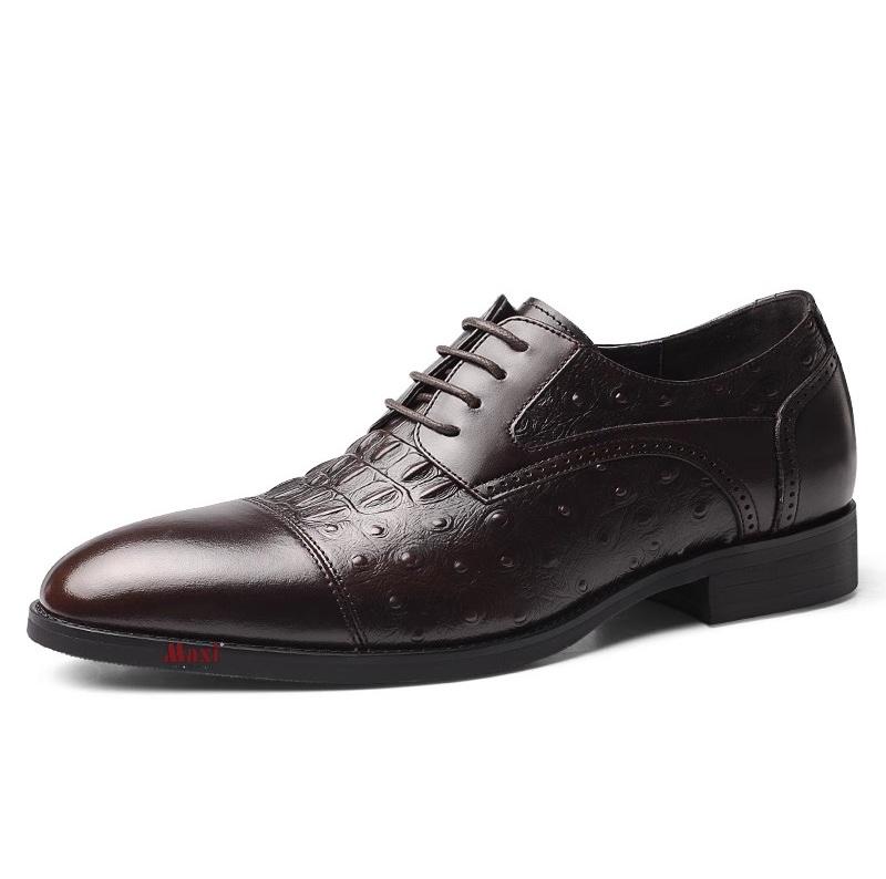 Giày cao cho nam dập vân cá sấu màu nâu MAX3020